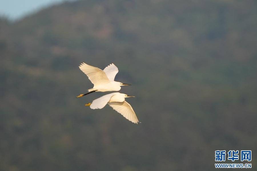 比翼双飞的白鹭(12月27日摄)。新华网发(杨龚云摄)